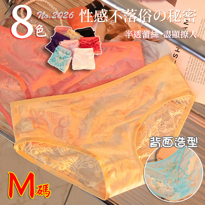 性感屁股蛋蕾絲內褲【M】性感半透網紗內褲 後背鏤空細帶蝴蝶三角褲