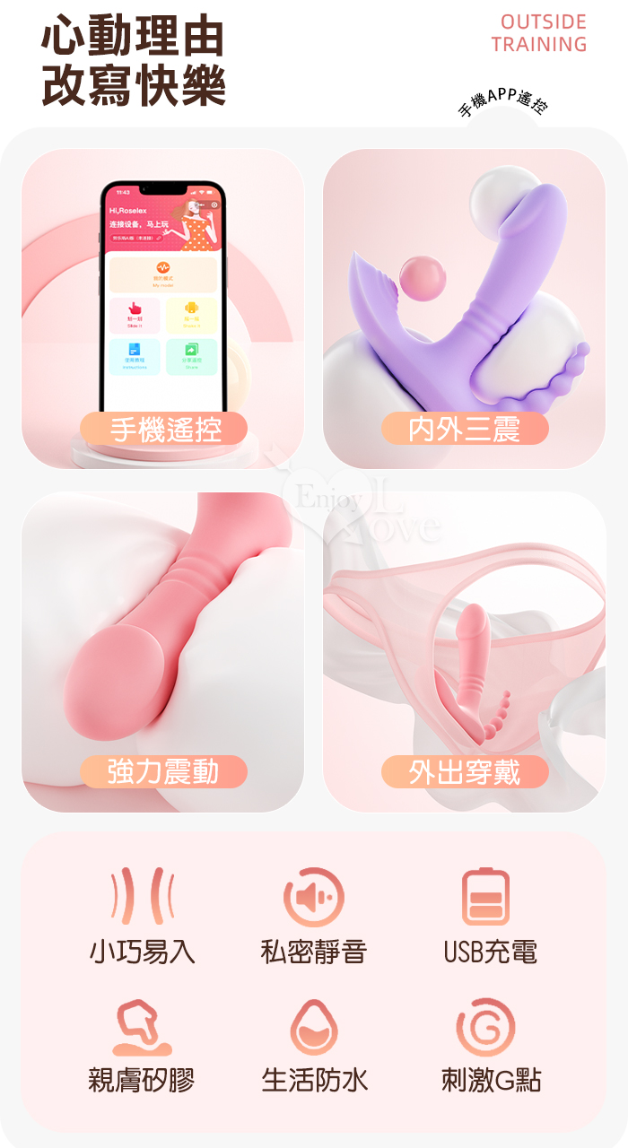 ►您現在的位置:首頁>ROSELEX 勞樂斯 ‧ 悅逗 10頻雙馬達震動三點拉珠刺激穿戴按摩器 - 可手機APP遙控﹝具兩種操控模式﹞紫