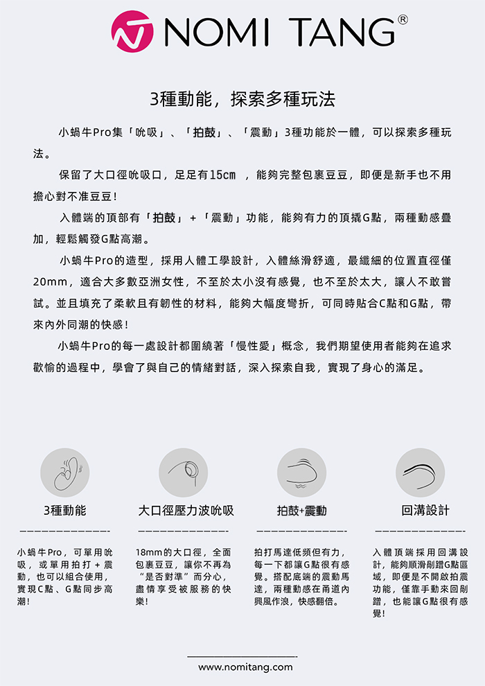德國Nomi Tang.小蝸牛Pro 吮吸+拍鼓震動 3合1設計~內外同潮按摩器