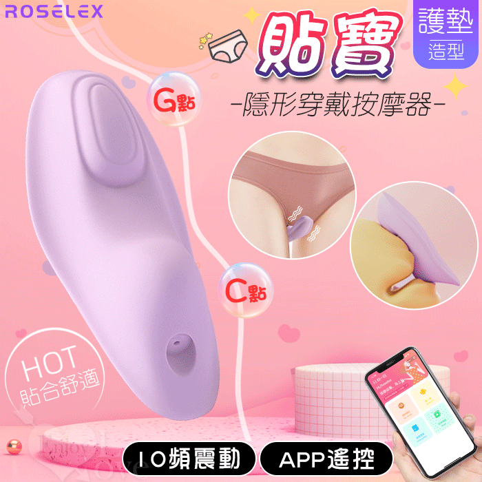 ROSELEX 勞樂斯 ‧ 貼寶 護墊造型隱形穿戴按摩器﹝10段變頻/輕薄貼身/兩種操控模式﹞手機APP遙控 - 紫