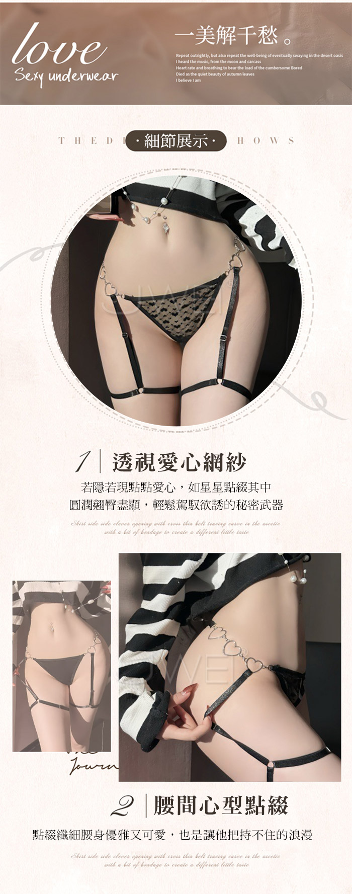 ►您現在的位置:首頁>極夜誘惑.愛心鏈條綴腰吊帶低腰丁字褲【黑網愛心】