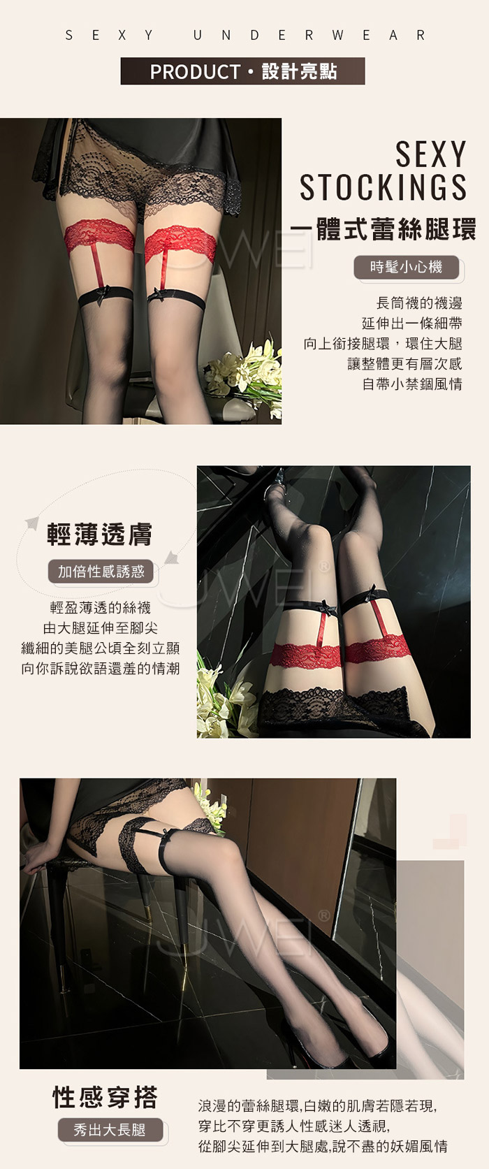 慾情誘惑.法式蕾絲花邊 蝴蝶結腿環長筒過膝絲襪【紅】