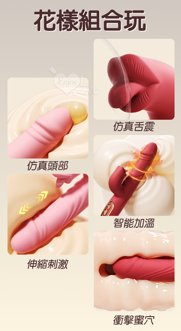 Soul Choice 露西 ‧ 動感10X伸縮10X舔震仿真老二按摩棒﹝衝擊蜜穴+唇舌強震+智能加溫+親膚矽膠+靜音防水/便捷充電﹞粉
