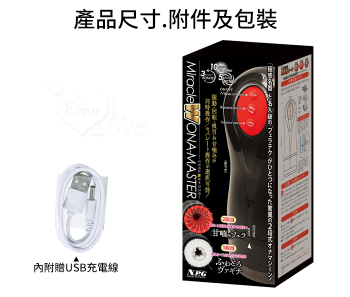 日本NPG.奇蹟Wオナマスター 2段式10x3x5震動迴轉吸引專家級口交技巧自慰器