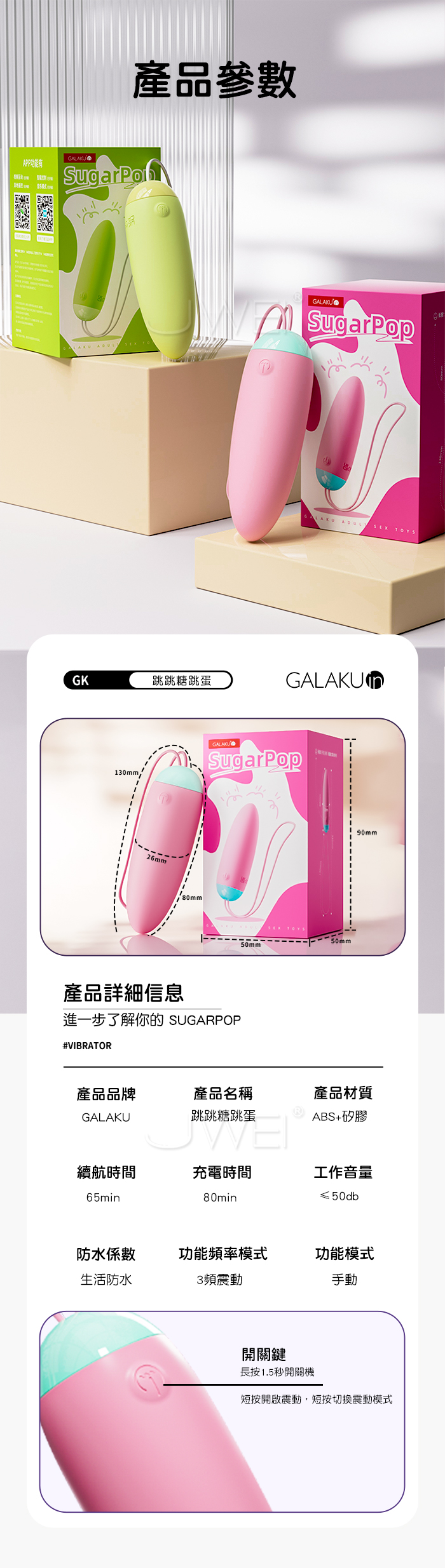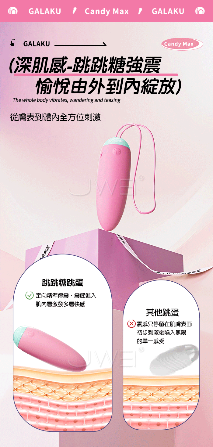 首頁>GALAKU.跳跳糖 3頻爆跳穿透強震 深肌快感 加厚矽膠變頻跳蛋【基礎款-粉色】