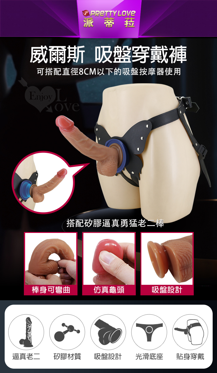 PRETTY LOVE 派蒂菈 ‧ 威爾斯 Nells 矽膠逼真勇猛老二棒+強力吸附穿戴褲﹝可拆分通用﹞